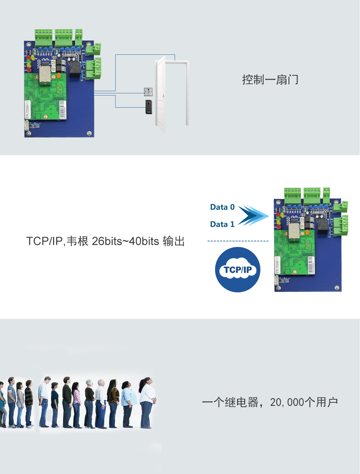 Control 1 door, get in ™ ★≥and out door by swiping card, or get i↔→₽n by swiping card an♦ ↓d get out door by button