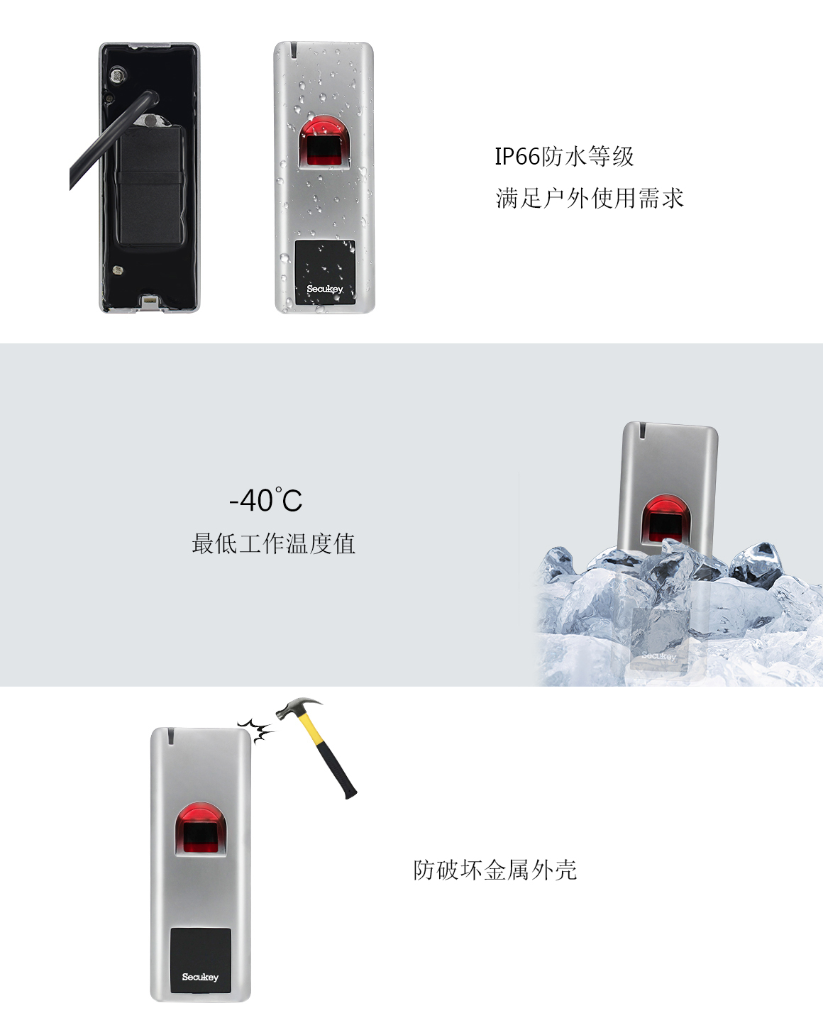 SF1是(shì)一(yī)款金(jīn)屬防水π☆(shuǐ)指紋門(mén)禁讀(dú)頭