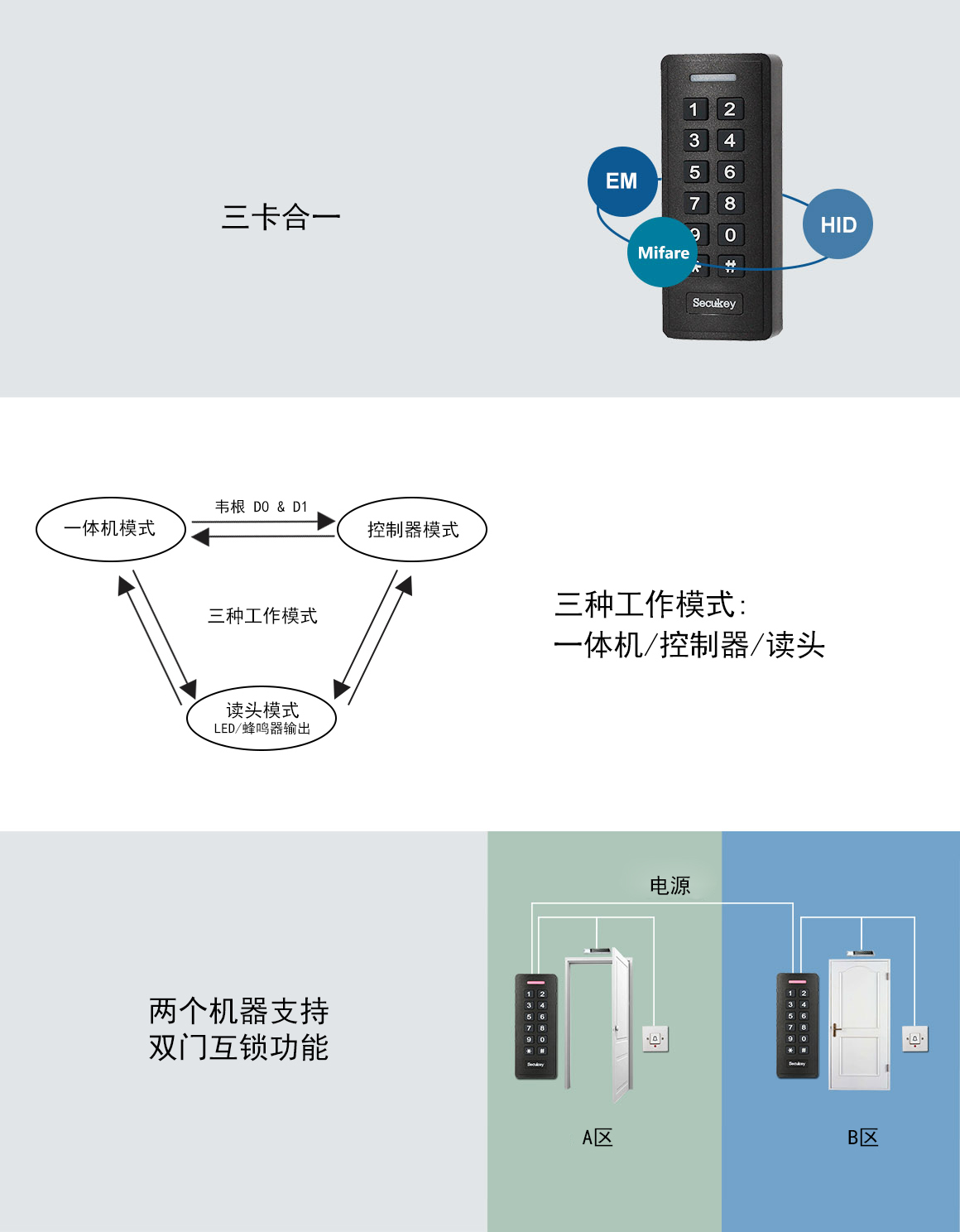 > 開(kāi)門(mén)模式: 卡,密碼。÷€卡+密碼, 多(duō)張卡/密碼