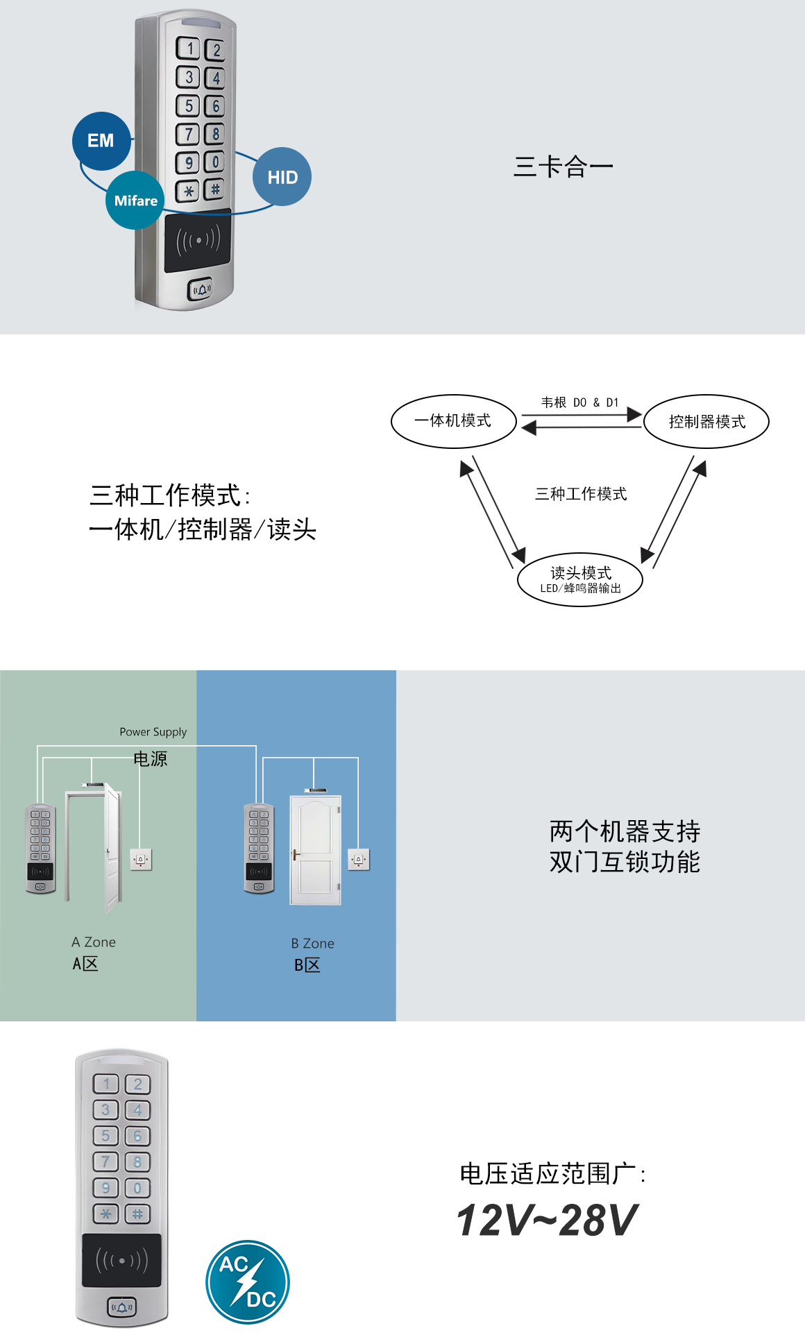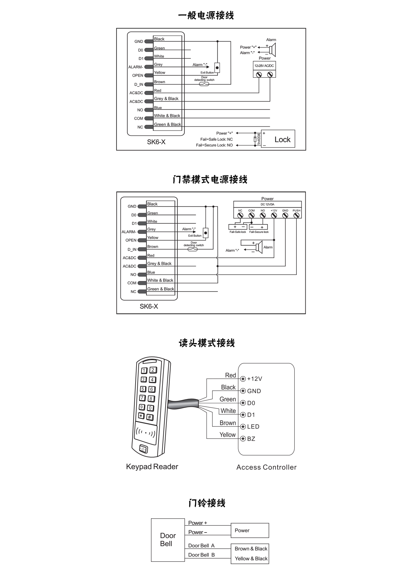 繼電(diàn)器(qì)輸出,出門(mé ✘®n)按鈕,報(bào)警器(qì),門(mén)磁,韋根輸入,韋≠♠↓根輸出