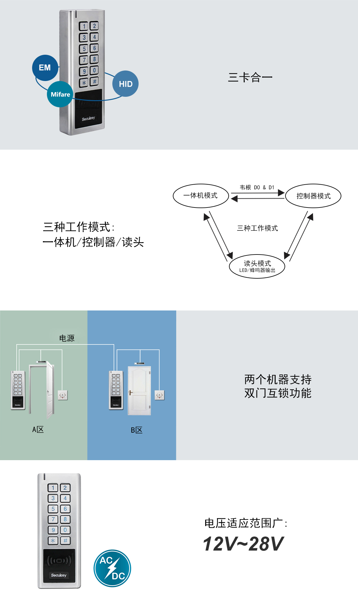 > 可(kě)以被設置成帶LED和(hé)報(bà♣≠o)警器(qì)的(de)讀(dú)頭模式