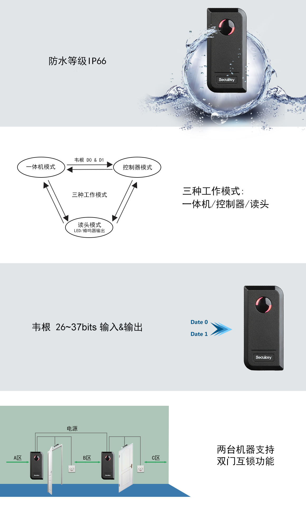 > 讀(dú)卡類型:125KHz EM卡和(hé)Hi∞εd卡;密碼:4~6位